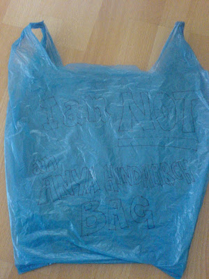 These non-biodegradable bags, made fi 100% plastic extrusion and nicked oot a cardboard boax fi a local wine shoap, are fully recyclable - u kin yase them ower n ower again!