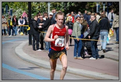 Disaster befalls yin competitor in the recent Bo'ness Half Marathon, as a bemused Binnz & Esther watch oan in the backgroond.