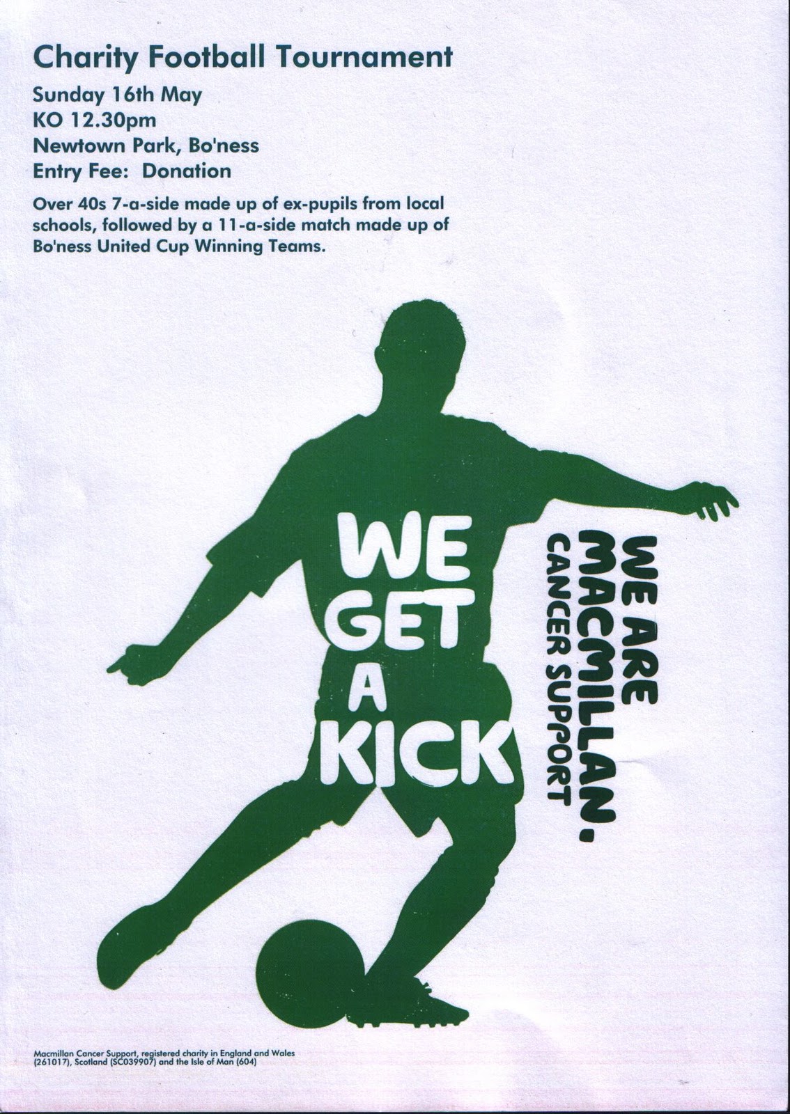 This Sunday the 16th sees a special charity fitba tournament it Newtoon Park in aid i MacMillan Cancer Support.