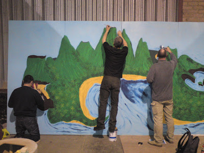 Seeminly, the exceptionaly handsome (and in no way going bald on top) person in question, was in fact standing on a perspex drum and if you look really closely you might also make out the ultra thin wire harness he was wearing.